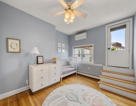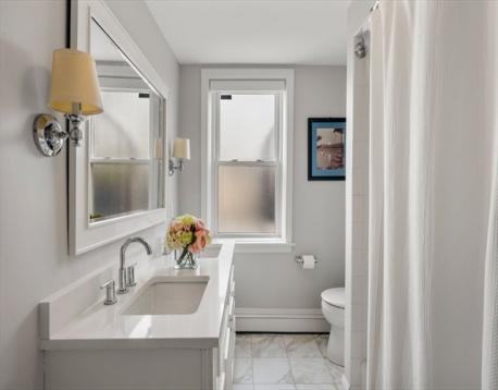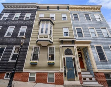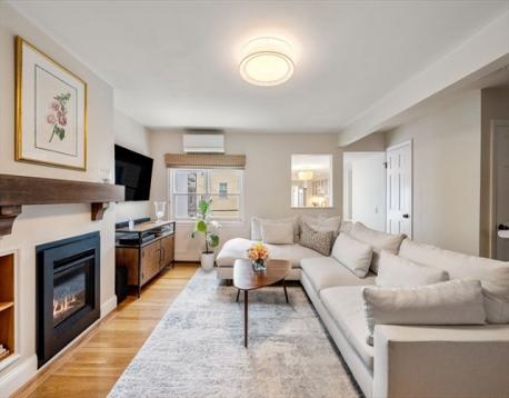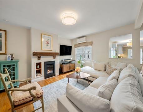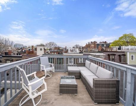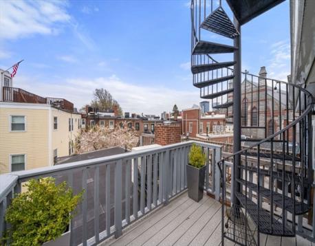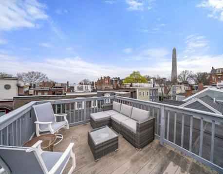 Located on a charming gas-lit street between Monument Square and town center, this 3+BR/1.5BA penthouse duplex offers 1,374sf of beautifully designed living space and three private outdoor areas, including a roof deck with spectacular Monument and city views. The expansive main level features an elegant living/dining great room with black marble mantels and a gas fireplace, a newly renovated office w/custom built-ins, and an eat-in chef’s kitchen with white cabinetry, stainless Bosch appliances, granite countertops, subway tile backsplash, pantry, and direct access to a private deck with a gas line for grilling. The upper level includes a spacious primary bedroom with a double-wide closet; an ample second bedroom with a large closet and direct access to a private deck; a nursery/office; and a well-appointed full bath with quartz topped double vanity, tub with tile surround, and marble flooring. Amenities: in-unit W/D, ductless A/C mini-splits, hardwood floors throughout, and storage.