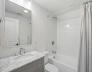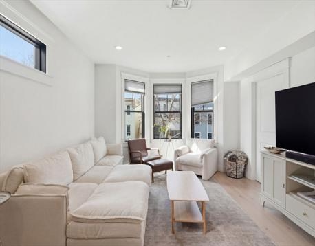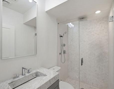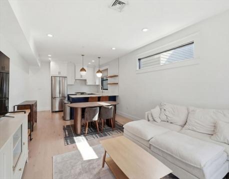 Built in 2020, this two-bedroom, two-bathroom condo offers modern living with an open concept layout. The primary suite features a walk-in closet and a marble bathroom with a glass-enclosed rain shower, while the second bedroom is well-sized with access to a full bath with a soaking tub. The kitchen features stainless steel appliances, a gas range, an apron-front sink, and custom cabinetry that flows into the main living space. Additional features include central air, in-unit laundry, tankless hot water, recessed lighting, and large energy-efficient windows. Enjoy a private deck, shared yard, and common roof deck with city views, all conveniently located near public transportation, parks, restaurants, and everyday amenities.