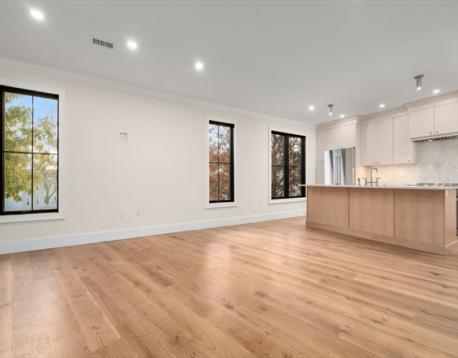 This stunning BRAND NEW condo was designed in perfect balance—functional, modern, and effortlessly warm. Flooded with natural light with oversized Marvin windows, this home features a custom chef's kitchen with Taj Mahal quartzite countertops, and a stand-alone island. It showcases a premium Thermador appliance suite with induction range, custom cabinetry with real polished nickel knobs and handles, and a bridge faucet. home’s refined character. Wide-plank white oak flooring, custom-tiled baths with Duravit fixtures, and a thoughtful floor plan elevate the home’s refined character. The property’s unique angled layout provides exceptional natural light, dramatic sunsets. The deck from the living room is made of mahogany and features glass railings. A garage parking space completes exceptional offering.