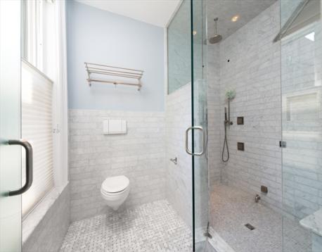 Elegant single family home set on a landscaped European garden on Marlborough St. Renovated to the finest standards while keeping the quintessential Back Bay details, this home boasts 5 BR's, 3 full & 2 half baths.There is a gourmet chef's kitchen & family room on the lower level that lead out to a private patio, hot tub & direct to 2 full sized parking spaces. The main level showcases a fireplaced formal living room & dining room w/ a butler's pantry, perfect for hosting family & friends. Up one flight to the 2nd floor on an original classic staircase, you will enter the sumptuous primary suite w/ fireplace. It spans the entire floor, complete with a huge spa bathroom w/ a large soaking tub. A custom walk in closet is not to be missed. The remaining four BR's are on the upper floors & are spacious & versatile for home office & guests. Two more full baths service these BR's. A beautiful stained glass skylight crowns the top of this fabulous home. Central AC rounds out this showpiece!