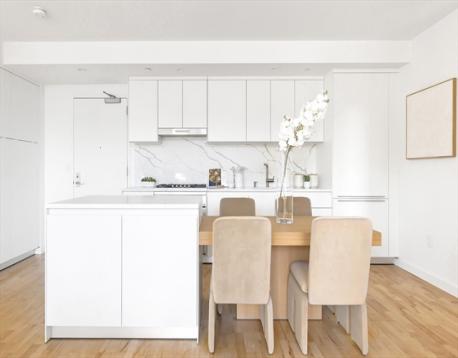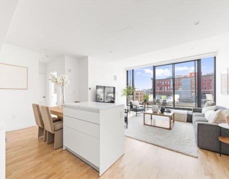 Brand new beautifully renovated two bedroom two bathroom residence with private outdoor space spanning the entire length of the home. This south-facing unit is flooded with natural light, highlighted by expansive floor-to-ceiling windows with automatic shades. The thoughtfully designed layout features high ceilings, an open-concept living area with a built-in dining space, hardwood flooring throughout, and beautifully updated bathrooms with heated floors. The sleek, modern custom kitchen is elegantly appointed and ideal for both everyday living and entertaining. Located in the highly sought-after Fort Point neighborhood, this home is just moments from Seaport’s Trader Joe’s, parks, playgrounds, boutique shops, South Station, the Financial District, and some of Boston’s top dining destinations. FP3 offers a 24-hour concierge, resident patio and a striking lobby showcasing rotating exhibits from local artists. Rental parking available nearby.