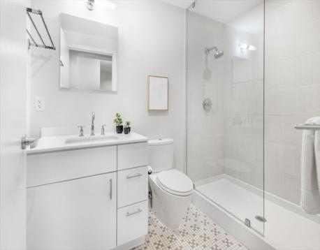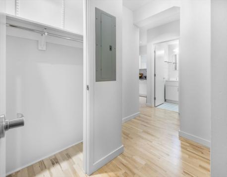Sleek, sophisticated living in the heart of Fort Point. This expansive 717 sq. ft. studio at FP3 offers refined urban style in one of Boston’s most coveted boutique elevator buildings. Loft-like ceilings, oversized windows, and hardwood flooring create an airy, open feel filled with natural light. Thoughtful upgrades elevate this home, including Hunter Douglas designer plantation shutters, energy-efficient recessed lighting throughout, and premium Elfa closet systems with integrated sensor lighting. The kitchen features contemporary cabinetry, stone countertops, and stainless-steel appliances, while the modern bathroom showcases a sleek standing shower. In-unit laundry and a new (2025) Trane HVAC system ensure comfort and convenience year-round. FP3 residents enjoy a 24/7 concierge, bike storage, and a rotating art gallery in the lobby. The roof deck offers panoramic city views, grill, and lounge seating, providing a serene retreat in the vibrant Seaport/Fort Point neighborhood.