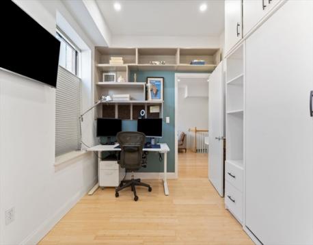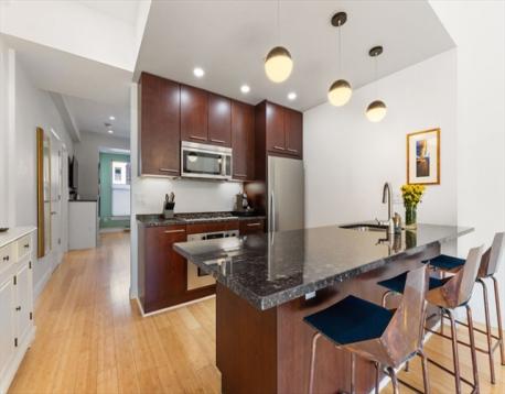 This rarely available townhouse/maisonette in pet friendly, professionally managed Gateway Terrace, offers the privacy of a home along with the ease of a condo in an urban setting.The main living area and lower level have high ceilings and hardwood floors. A bay window, an open living room and a second bedroom/office with a Murphy bed are on the upper level. Also a chef's kitchen featuring Bosch and Fisher Paykel appliances and stone counter tops. The dining area leads to a private terrace and a beautifully landscaped common courtyard with a gas grill.The lower level has a generous primary bedroom with an ensuite bath and a custom walk in closet. Both levels have ample closets and many updates. Located in the trendy SOWA area of the So End, you are steps from restaurants, cafes and galleries and one block to Whole Foods. Gateway is close to major highways, hospitals and the silver line. DEEDED GARAGE PARKING IN THE LOWER GARAGE AVAILABLE FOR PURCHASE. Additional garage storage too