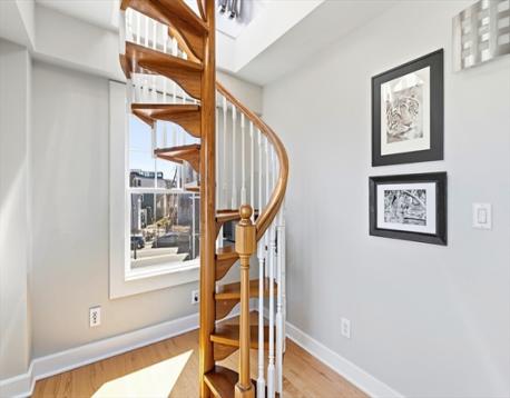 Introducing 35 Middle Street #4, a spacious 3-bedroom, 2.5-bath townhouse that lives like a single-family in the heart of South Boston. Offering 1,850+ square feet across three levels, this sun-filled end unit features an open-concept main level with a stylish kitchen, marble countertops, stainless steel appliances, ample cabinetry, and bar seating, flowing into the living and dining areas with a gas fireplace and access to a private patio. The second level offers two oversized bedrooms with walk-in closets and a full bath. The top floor is dedicated to a primary suite with space for a king bed, office or sitting area, a large walk-in closet, and en-suite bath. A spiral staircase leads to a private roof deck with 415+ square feet and sweeping skyline views. Additional features include hardwood floors, central air, in-unit laundry, and deeded parking. Ideally located near Andrew Square with easy access to the Red Line, highways, Seaport, beaches, and South Boston dining.