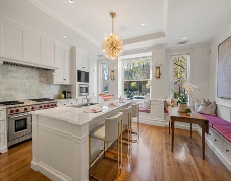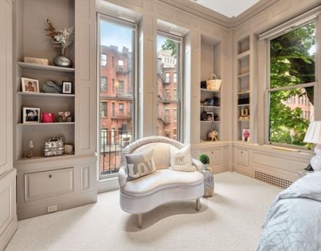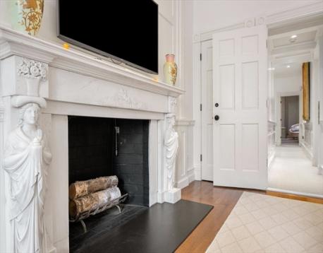 Only half a block from the Public Garden on Commonwealth Avenue’s magnificent leafy boulevard, this elegant triplex is on an impressive stretch of historic homes in one of Back Bay’s finest locations. Featuring 2 direct-access garage spaces, a private deck, garden terrace and elevator access on all levels, this thoughtfully designed 4-bedroom home suits today’s way of living while reflecting its beautiful Back Bay character in a fresh, clean timeless style. There are high ceilings and gracious embellishments. A columned fireplace highlights the sunny bay-windowed living room flowing openly into the dining room with exquisite cabinetry. The airy dine-in chef’s kitchen overlooks the avenue’s trees. The alluring primary suite admires leafy avenue views from the light-infused sitting bay and also features an elaborate decorative fireplace, dressing room and luxe marble bath. Custom-fitted, the bedroom/library has a vaulted marble bath. Versatile bedroom/gym and family room/bedroom.