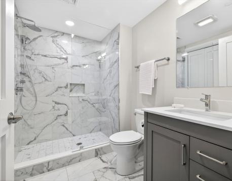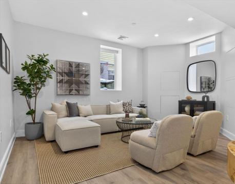 Impeccably designed, this 3-bed, 3-bath residence offers refined, easy living in one of Jamaica Plain's most desirable locations. Completed in 2019, the home pairs modern architecture with high-end finishes and a layout that feels both sophisticated and effortless. The open-concept main level features oversized bay windows that flood the space with natural light. A gas fireplace and hardwood floors add warmth throughout. The main-level primary suite includes a walk-in closet and en-suite bath with radiant heated floors. The lower level surprises with high ceilings, a third bedroom, full bath, and generous living area - open and airy rather than below grade. Features include central AC, in-unit laundry, private storage, and one off-street parking space in a boutique three-unit building with landscaped grounds. Moments from the Southwest Corridor, JP's shops, restaurants, and transit: contemporary design, abundant natural light, and exceptional livability.