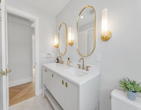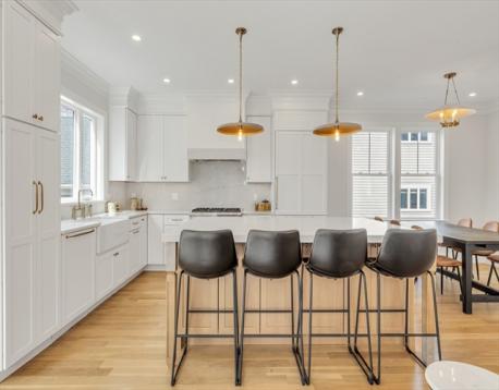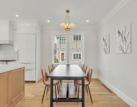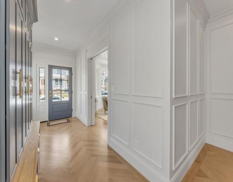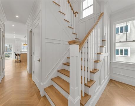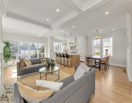 Welcome to 36 Worley Street, a stunning new rebuild by a high-end local builder in a prime West Roxbury location. The entry foyer has a herringbone pattern wide plank flooring, mudroom built in, crown molding and a beautiful open stair case to the second floor. The chefs kitchen has white shaker style cabinetry with a large island in white oak with quartz countertops and high end Thermador appliances. The adjacent family room with coffered 9 foot ceiling and built in gas fireplace leads to a large deck through double patio doors overlooking a private back yard. The guest bedroom and living room plus a full bath complete the first floor. On the second floor enjoy the grand primary bedroom with a large tiled shower, double vanity with quartz countertops and a walk in closet. There are three additional bedrooms with walk in closets, a full bath and laundry room. The unfinished lower level offers plenty of options for future use and has direct access to a lower level stone patio.