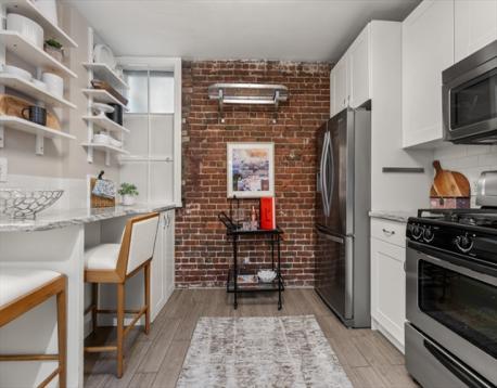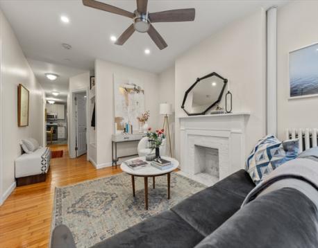 A rare opportunity to own a beautifully renovated parlor-level 2-bed, 1-bath in a quintessential Beacon Hill rowhouse. Thoughtfully designed to maximize space & flow, the home offers a highly functional layout with well-proportioned rooms that live larger than expected. The living room impresses windows overlooking Grove St & a charming white brick fireplace, creating an inviting & comfortable place to gather. The kitchen is impressively sized & exceptionally efficient, featuring generous storage, gas cooking, in-unit washer/dryer, open shelving, & a breakfast bar for easy, everyday living.The primary bedroom features two closets, while the second bedroom offers ideal flexibility for guests, a nursery, or a refined home office. An updated bath includes a walk-in tiled shower. Complete with low condo fee, a tranquil private patio and extra storage closet, this home delivers a level of finish, layout, & livability truly unique for this price point in Beacon Hill.