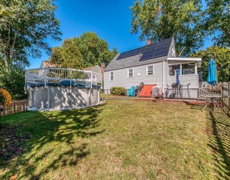 Amazing home on a tranquil, leafy dead end street. This must see 3 bedroom with 1.5 baths may appear to be just another cape-style house but has the finishes buyers seek such as white kitchen cabinets, hardwood flooring, energy-friendly solar panels (OWNED) on a young roof, vinyl siding and windows plus partially finished dry basement. Just a few of the highlights offered in this historic Readville neighborhood. Schedule a private showing for a firsthand experience of summer days on the patio of the fully fenced back yard with pool and storage shed or admire the peace while relaxing with beverage in hand on the 3 season porch. Is location important? Under 5 minutes to 2 commuter rail lines plus easy access to bus connection for subway. Close to major routes as well as recreation at Blue Hills Reservations and your choice of Legacy Place in Dedham or University Station in Westwood. Make arrangements for a private showing.