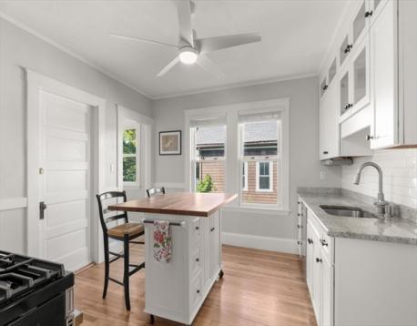 Perched high above the street with lovely treetop and distant city vistas, this pristine, light-filled condo blends modern updates with classic charm in an unbeatable location near Roslindale Village and West Roxbury’s Centre Street shops and restaurants. A thoughtful floor plan flows seamlessly from the living room into the dining room, while the bright, inviting kitchen—featuring a butcher-block island, and bonus pantry—is perfect for everyday cooking and easy entertaining. Private front and rear porches extend your living space, and a shared yard with raised garden beds (with timed drip irrigation) invites green thumbs. Three comfortable bedrooms promise restful nights, and abundant natural light shines throughout. Commuting is a breeze with a quick walk to the Bellevue MBTA Commuter Rail or direct bus to Forest Hills for the Orange Line. Enjoy vibrant cafes, parks, and neighborhood amenities just moments from your door—your ideal Roslindale home.