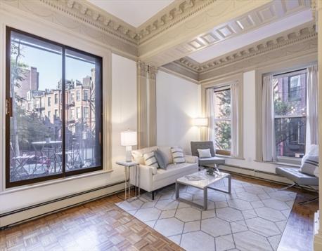 Welcome to this large and inviting 2 bed, 1 bath home nestled in one of Back Bay’s most grand buildings on Comm. Ave. This beautifully maintained residence combines timeless character with modern comfort, featuring high ceilings, ornate architectural details, and classic parquet flooring throughout the living / dining room. The spacious living room opens to a private balcony, perfect for enjoying a morning coffee or evening breeze. Both bedrooms are fitted with brand-new carpet and the entire home has been freshly painted. The primary bedroom is large enough to accommodate a king sized bed. Both bedrooms offer large closets. The kitchen offers ample storage and is outfitted with stainless appliances. Located in a professionally managed building with Butterfly intercom access, and common laundry this property offers ease of living in a downtown neighborhood, just moments from Boston’s finest dining, shopping, and green spaces along the Comm. Ave Mall. Ask about nearby rental parking.