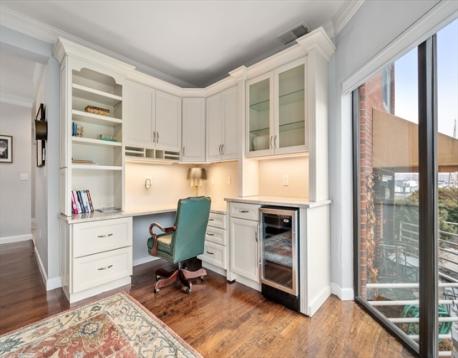 Open Space, Location, and Parking - Sophisticated Waterfront Living in the Historic Navy Yard! This beautiful townhouse offers a bright, and airy floor plan and a water view! The main level is defined with high ceilings, rich cherry hardwood flooring and elegant crown molding. The living room highlights a fireplace, custom built in desk/office cabinetry and bar, & sliding doors leading to private deck w/marina, city & harbor view. The gorgeous kitchen includes a breakfast bar and peninsula with quartzite counters. The second floor primary bedroom with walkin closet and private bath, showcases large windows offering serene views of the marina, city skyline, and harbor. The guest bedroom also has private bath, two closets and floor to ceiling greenhouse window overlooking the courtyard. Two deeded parking spots add to the carefree, convenient lifestyle. This home offers an unrivaled lifestyle of luxury and convenience in Boston’s most historic maritime enclave.