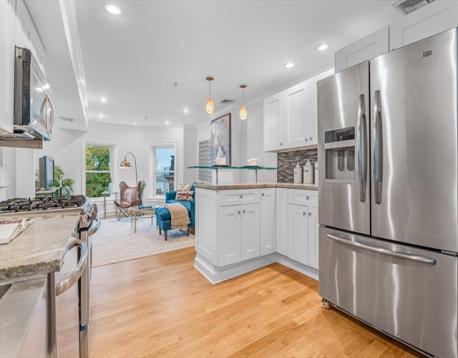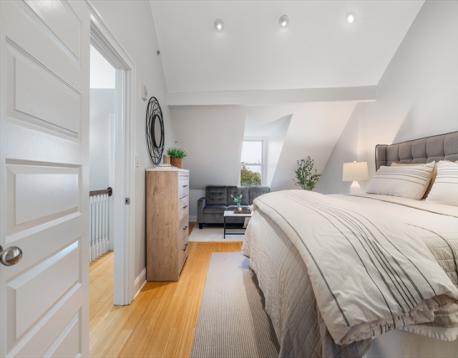 Stunning penthouse duplex with sweeping skyline and harbor views offers refined finishes in East Boston’s picturesque Eagle Hill. The spacious living area is anchored by a graceful front bay window framing both water and city vistas, seamlessly flowing into an eat-in kitchen with granite countertops, floating glass bar, stainless steel appliances, and abundant cabinetry. Step outside to a private rear deck—perfect for al fresco dining or evening sunsets. Upstairs, the top-floor primary suite impresses with soaring ceilings, expansive closet space. The en-suite bath is a serene retreat with elegant fixtures and timeless design. SECOND OFFICE OR SMALL GUEST SPACE with commanding panoramic views of its own. Modern comforts include central A/C, in-unit W/D, gas cooking, and exceptional storage throughout. With a prime location just minutes from downtown Boston, Logan Airport, and neighborhood parks, this residence blends style, convenience, and city access in one extraordinary package.