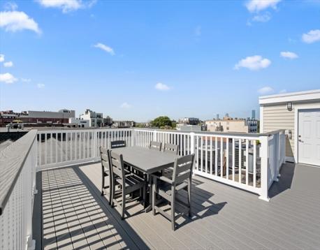 Enjoy sunlit living in this contemporary expanse with TWO garage parking spots in one of Boston's hottest neighborhoods. Tree top views with glimpses of skyline through many oversized windows + gorgeous wood floors w/cherry inlay. Open floor plan invites entertaining and relaxing with dining area and breakfast peninsula showcasing plenty of cabinetry with granite topped workspaces and a full complement of stainless appliances. Both bedrooms are generously sized and the primary offers a designer en-suite bath, great closet and adjacent laundry. Upstairs reveals a common roofdeck with panoramic views of the city. Enjoy living in the heart of all the dining, shopping, nightlife and events that fill your daily feeds! Easy access to one of the few urban public beaches, nearby marina and all the outdoor recreation Southie offers. Commuting options abound along bike paths, lots of public transport and highway access in and out of town, Logan Airport + So. Station.