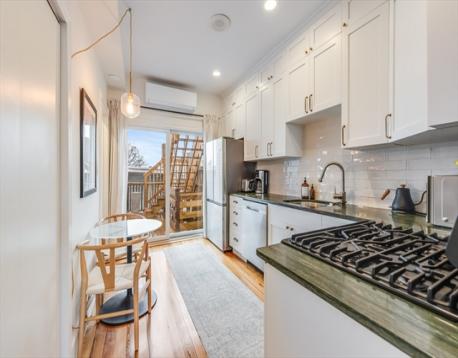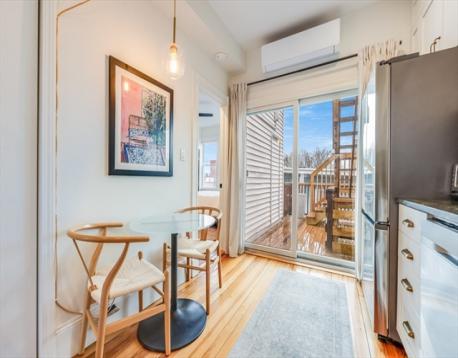 The crown jewel of Story Street, welcome to the penthouse at 39 Story—an exceptional residence where style meets comfort. Thoughtfully updated and impeccably appointed, this stunning sun-splashed 2-bedroom home offers an open-concept kitchen, living, and dining space designed for effortless modern living and entertaining. The sleek chef’s kitchen shines with contemporary appliances, custom cabinetry, and a striking backsplash that makes a statement. Retreat to the spacious primary suite featuring generous storage and a beautifully finished en suite bath, while three zones of heat and A/C provide year-round comfort. Topping it all off is a spectacular private roof deck, just four years young, delivering the perfect private outdoor escape with unforgettable appeal. With strong rental history and low condo fee, this unit is perfect for a first-time home buyer or seasoned investor. Parking available for rent in the area.