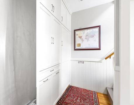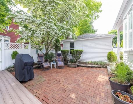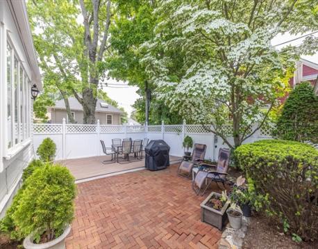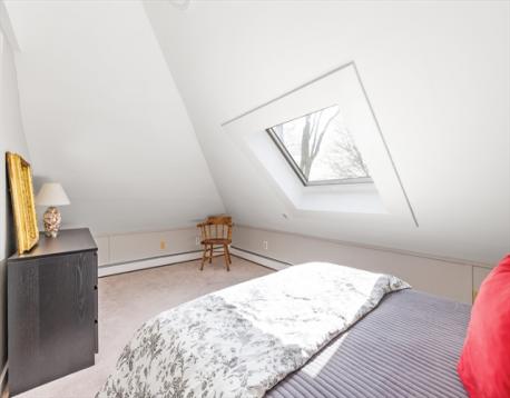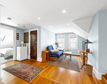 Welcome to this large, unique, sun-drenched two-story condo in a prime West Roxbury neighborhood, close to shopping, restaurants, medical area, and public transportation. Rich with character, including, crown and picture moldings, chair rails, original carved mantel, and more. This home has been thoughtfully updated with recessed lighting, built-in bookcases, and a custom-designed kitchen with white cabinetry, quartz counters, stainless appliances, and exceptional pantry storage that complements the elegant details. This home spans 2,100+ sqft over two floors, living more like a single family. Two bedrooms on the main floor, one with an attached office, and a 3rd bedroom upstairs next to a large bonus room that can be converted back to a 4th bedroom as noted in public records. Updated baths, in-unit laundry, a solar-powered skylight, and ample storage with some custom closets. Two deeded parking spots, one garaged. Landscaped, mature gardens, and a lovely backyard patio.