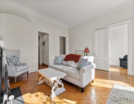 Naturally well lite one bedroom residence on 2nd floor with large south facing exposed window sets. A sun-filled living room showcases high ceilings, ornamental molding, over-sized new windows and a charming fireplace. Well cared-for original herringbone hardwood floors throughout shared by custom built-in shelving. The bedroom offers a large walk in closet and views of the Hancock & Prudential towers. A galley kitchen enjoys multiple pantries, a stainless steel dishwasher and ample cabinetry. Small entry foyer, laundry on site and extra private basement storage provides a wonderful city lifestyle in this Back Bay condominium. Located a short walk to the Charles river esplanade, Back Bay cafes, shops and multiple Train stops.