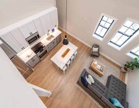 Located in a converted 1890's Queen Anne building dubbed Allston Hall, with easy access to Harvard + BU, this top floor LOFT has two levels of living space and 18' CEILINGS! An entry foyer leads to a dramatic open floorplan living, dining + kitchen area with distinct Palladian windows. Finishes throughout have a crisp + modern feel with engineered oak floors and a contemporary white + gray kitchen w/Bosch appliances and a large seating island. There is also an office nook on this floor. Upstairs is spacious mezzanine level bedroom overlooking the floor below. It features a walk-in closet + laundry. The building has an elevator + parking included for the first year. Conveniently located near everything that Allston has to offer including the T, shopping, restaurants and more. ONE OF ONLY 2 LOFTS REMAINING. CALL FOR A PRIVATE SHOWING TODAY!