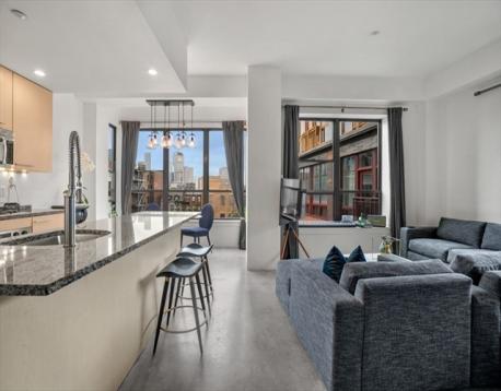 Rarely available luxury loft studio in the heart of SoWa, offering 10' ceilings, polished concrete floors, and an abundance of natural light from two walls of windows showcasing stunning Back Bay skyline views! This 5th floor corner home features a generously sized open-concept layout with a designer kitchen appointed with Bosch & Paykel stainless steel appliances, granite counter tops, gas cooking, and an island ideal for entertaining, along with central heat and AC and in-unit laundry. Gateway Terrace is an elevator building with a common courtyard featuring outdoor lounge seating and a gas grill, ideally located moments from SoWa Open Markets, Ink Block dining and fitness, and Whole Foods!