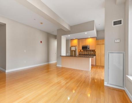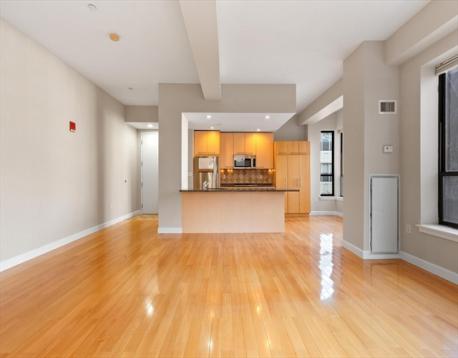 Modern living with deeded garage parking in the South End. This bright and thoughtfully designed studio features a dramatic wall of 10 windows with western and northern exposures, filling the space with abundant natural light while offering treetop privacy. Highlights include 10-foot ceilings, a separate sleeping nook, and a well-designed kitchen with a 9-foot peninsula that seats five. The kitchen is appointed with stainless steel Bosch and Fisher & Paykel appliances, granite countertops, and warm wood cabinetry. Additional features include in-unit laundry, central A/C, and a spacious bathroom with a tub. This professionally managed building offers two elevators, a recently refinished lobby, an on-site trash room, a package delivery area, and a secure front entry with buzzer/intercom system. Common roof deck with great views. The deeded parking space is located next door at 35 Fay. Ideally situated in SoWa, the home is close to shops, restaurants, and offers easy access to I-93.