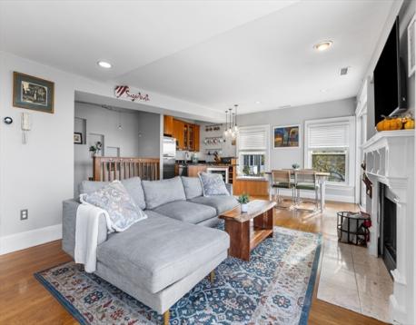 Welcome to 40 Mead Street, Unit 3 — a sun-filled top-floor condo on a quiet, tree-lined Charlestown street with sweeping, unobstructed Boston skyline views. The building has just undergone a full exterior re-siding (2025) and new rubber roof (2022), providing a refreshed look and long-term peace of mind. Inside, the bright and efficient layout features hardwood floors, high ceilings and abundant natural light through large sliding doors. The kitchen offers stainless steel appliances, granite counters and ample cabinetry, opening to a comfortable living and dining area ideal for entertaining. The spacious bedrooms provide generous closet space and the spa-like bath includes in-unit laundry. A cozy wood-burning fireplace and an oversized private deck create the perfect indoor-outdoor retreat. Additional perks include 2025 HVAC system, additional basement storage and easy access to Assembly Row, dining, parks, Route 93 and public transportation — making this the ideal Charlestown home.