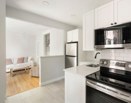 This lovely 2-bedroom home is in excellent condition and perfect for a new owner-occupant or savvy investor. The renovated kitchen features stainless steel appliances, quartz countertops, a breakfast bar, and stylish fixtures. Other recent updates include a modern bathroom with built-in storage; gorgeous refinished hardwood floors and fresh paint; all new energy-efficient windows; and recessed lighting throughout. The open living/dining room has a built-in china cabinet, and the bedrooms are comparably sized for maximum flexibility—roommates, work-from-home, or guest space. The generous entry foyer allows for a desk or armoire. Additional benefits include a private porch, laundry just one floor below, and a large exclusive-use storage area. Heat and hot water are included in the condo fee. Well situated near B, C, and D Green Line stations, Boston College, restaurants, shopping, and public recreation areas including dog parks, tennis/pickleball courts, and Chestnut Hill Reservoir.