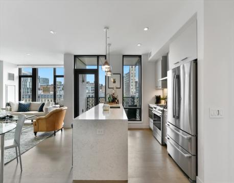 Discover the value and convenience of Ink Block in this spacious 2-bed plus den with two garage parking spaces at SIENA. Unit 710 offers one of the most desirable exposures in the building with expansive floor-to-ceiling windows and two private balconies. The living and dining area flow seamlessly into a chef-inspired kitchen, equipped with quartz countertops, stainless steel appliances, and large island, ideal for both cooking and entertaining. The spacious primary bedroom boasts custom smart shades, walk-in closet, and spa-like en-suite bathroom. The second bedroom, also featuring an en-suite bath, is ideally located on the opposite side of the unit. Additional highlights include in-unit laundry, central A/C, and private on-site storage. Amenities include a 24-hour concierge, state-of-the-art fitness center, rooftop sky lounge, bike storage, and a resident clubroom. Enjoy easy highway access and walk to Whole Foods, Bar Mezzana, Tatte, Sweetgreen, and so much more!