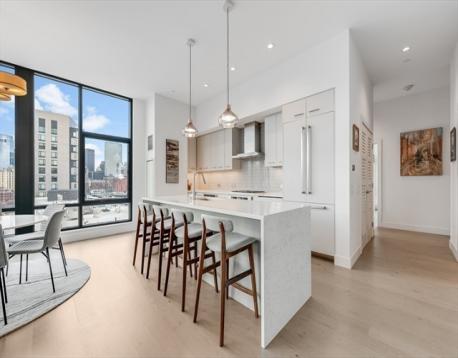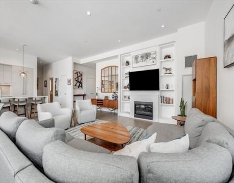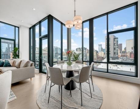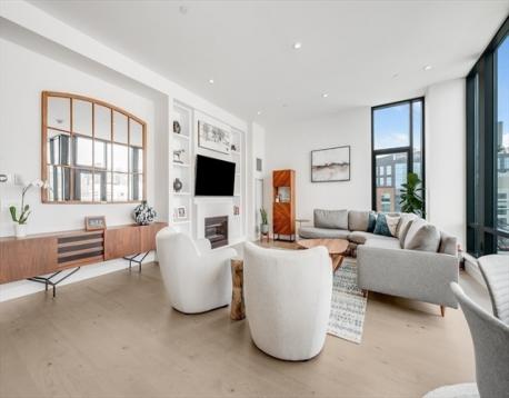 Discover luxurious living in this exceptional penthouse at Siena, located in the vibrant Ink Block community and SOWA District. Spanning nearly 2,000 sqft, this 3-bedroom, 3-bath residence features soaring 11-foot ceilings and floor-to-ceiling windows that showcase breathtaking views of Boston’s skyline. The open-concept living area, anchored by a sleek gas fireplace with custom built-ins, is perfect for entertaining. The chef’s kitchen boasts an oversized island, Thermador appliances, and ample storage. The primary suite includes a custom walk-in closet and a spa-like bath with a soaking tub and glass shower. Two additional bedrooms offer generous closet space and convenient bath access. Enjoy two private balconies with sweeping city views, plus 2 garage parking spots and additional storage. Siena offers a wealth of amenities, including 24/7 concierge service, a gym, and a stunning sky lounge, within steps of shopping, dining, and art in the SOWA District. Dog friendly neighborhood