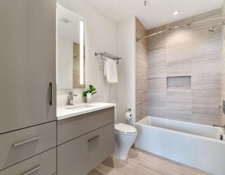 Skyline views and endless sun in a contemporary-style home in the full-service luxury Siena at InkBlock.One direct-access garage space directly under building (NOT under Whole Foods lot). Floor-to-ceiling windows wrap around three sides of this stylishly-finished 2 bed, 2.5 bath. This home is an entertainer's dream with the kitchen and large island adjoining the dining area, private balcony, and spacious open living area. Recessed lighting and A/C throughout. Whip up fabulous meals in the beautiful modern kitchen with stainless steel, gas cooking, tons of quartz counter space, and glass-tile backsplash. The primary bedroom fits a king bed, includes a walk-in closet, and features a luxe spa-like en-suite bath with double sink and walk-in shower. Ample guest bed with en-suite bath. In-unit laundry. deeded storage. 24 hr. concierge, elevators, gym,bike storage, rooftop lounge and deck, large reception/meeting room w/ catering kitchen. Pet-friendly. Near Whole Foods, red, silver lines