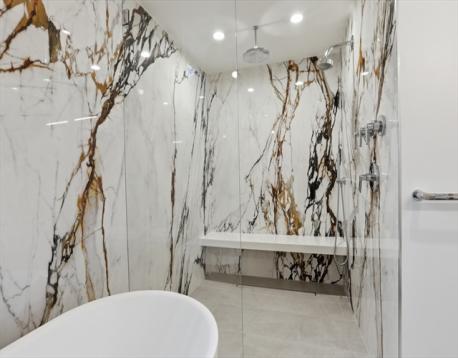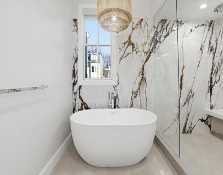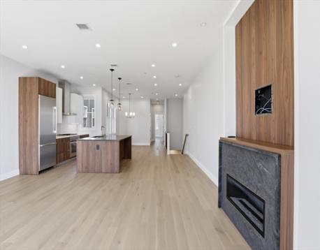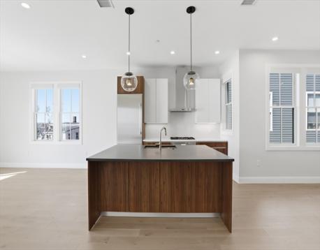 Welcome to this exceptional South Boston penthouse, where refined design meets uncompromising quality and captivating water views are enjoyed from every level. Two private decks and dedicated parking enhance a home curated with sleek modern lines and rich, hand-selected stone textures. The expansive layout features European French oak flooring, soaring ceilings, grand windows, and elegant lighting throughout. Pre-wired for surround sound inside and out, it’s ideal for both relaxation and entertaining. The first level offers a luxurious primary suite with a walk-in closet, spa-like bath with double vanity and soaking tub, and a private deck, along with additional bedrooms and a home office. The open living area centers on a contemporary kitchen with custom Italian cabinetry, Thermador appliances, an oversized island, fireplace, and direct deck access.