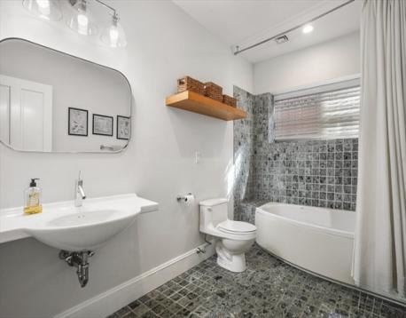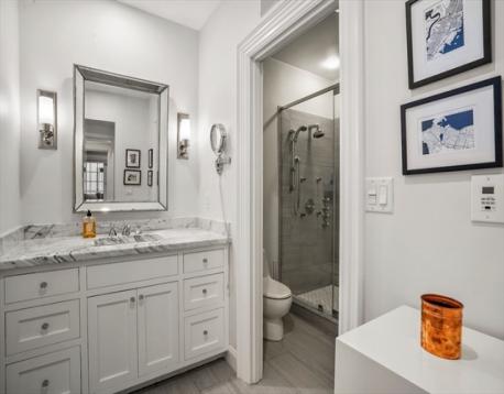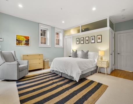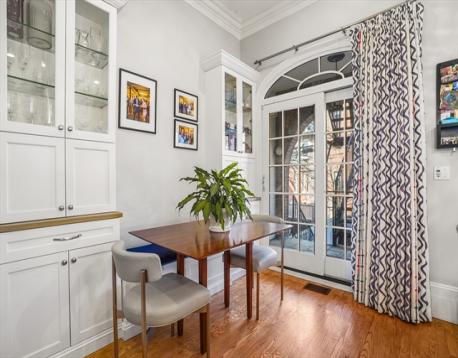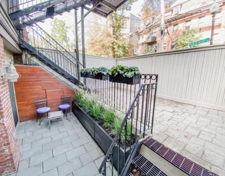 Urban perfection! All the conveniences and space a suburban home provides in this lovely, parlor and garden duplex. With over 2000 square feet on two living levels, this stunning unit boasts open living/dining with soaring ceilings, floor to ceiling windows with sunlit Southern corner exposure, original marble mantel and custom built-ins. Dining area for formal and informal gatherings. Chef’s eat-in kitchen with marble counter tops, Sub-zero refrigerator, gas cooking and rare, full walk-in pantry. Double French doors lead you to your private deck for grilling and al-fresco dining along-side two additional paved patios. Lovely powder room completes the living level. Lower level with two guest bedrooms for sleeping/office/nursery and a large primary suite with walk-in closet, two additional closets and a renovated primary bath. Side by side washer dryer and additional storage. All this and A/C and direct access to full, off street parking.