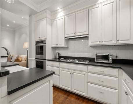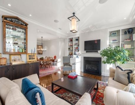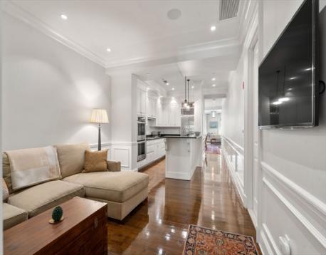 Welcome to The Meads, a boutique historic 2007 restoration of a McKim, Mead, and White designed residence built in 1891. Dramatic third floor spacious, elegant two bedroom home featuring a wide south facing living room/dining room with tall ceilings, crown moldings, gas fireplace, and custom built-ins with a wine fridge overlooking the Commonwealth Avenue Mall. The kitchen features Thermador gas cooktop and double ovens, Bosch and Sub Zero appliances, white cabinetry, and an adjacent pantry/laundry room plus informal dining area / sitting room. The second bedroom features an en-suite bath. The Primary bedroom faces Marlborough Street with direct views of Charlesgate Park. The en-suite bath features a walk-in custom dressing room, a bright en-suite bath with a white marble soaking tub, walk- in shower & double vanity. Waterworks bath fixtures. Audio speakers throughout. Elevator, exclusive garage parking with EV Charger. This is a beauty not to be missed!