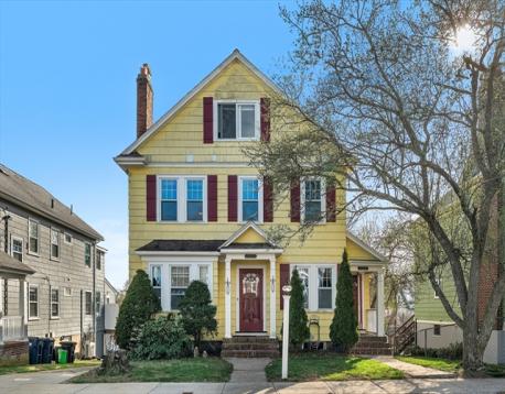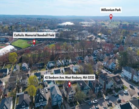 Available for the first time in 25 years! This exceptional West Roxbury two-family at 42-44 Sanborn Ave offers a rare opportunity on a quiet, tree-lined street near Centre Street shops, commuter rail, and Millennium Park. Set on a 5,663 sq ft lot with 4-car parking and over 3,100 sq ft of versatile living space, this charming yellow shingle-style property features a covered portico and high ceilings. It is ideal for an owner-occupant looking to offset the mortgage or an investor seeking a strong asset with a projected 6% cap rate. The first-floor unit features 2 bedrooms plus an office, gleaming hardwood floors with original dark wood trim, and a classic fireplace living room. The upper unit offers 3 bedrooms plus a sunroom and finished oversized attic, featuring beautiful hardwood floors, an updated eat-in kitchen with newer white cabinetry and stainless steel gas range, plus a renovated main bath. A rare blend of space, character, income potential, and location!