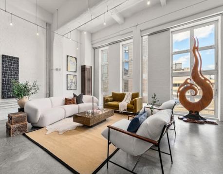 This thoughtfully designed contemporary loft offers 2 bedrooms, 2 full and 2 half baths at The Edison—an iconic historic building in a premier downtown location. Created through a stunning renovation combining two units, this residence spans just under 4,000 square feet featuring front-to-back exposures, direct elevator access and 3 large storage units. The expansive living area is ideal for entertaining, featuring soaring 14’10” ceilings, oversized windows, polished concrete floors, whitewashed brick walls, and a mirrored built-in bar. The chef’s kitchen is outfitted with custom Zebrawood cabinetry, SubZero and Gaggenau appliances and a distinctive Wenge wood dining platform. A spacious pantry with laundry leads to a lofted lounge and office area. A dramatic central hallway leads to two spacious king-sized bedrooms, each with an en-suite bath. The primary suite includes a built-in desk, custom walk-in closet and a luxurious five-piece bath. 3 garage parking spaces available for rent.