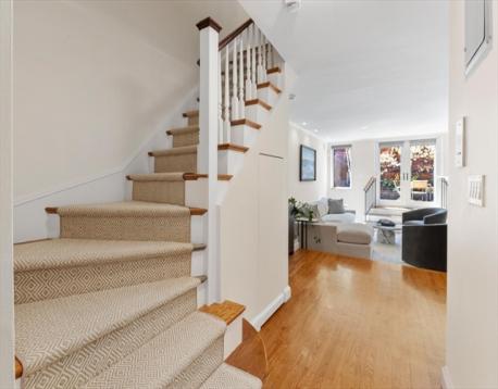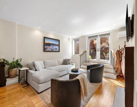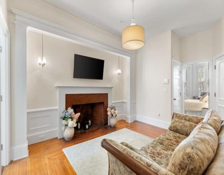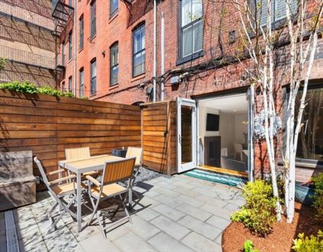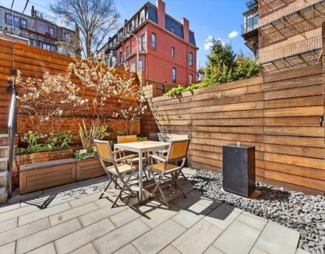Bathed in natural light and beautifully renovated, this exceptional 3 bed, 2 bath parlor garden duplex offers seamless indoor-outdoor living with direct access to 1 parking space. The main living level features a bright south-facing living and dining area with tall ceilings and a decorative fireplace, opening through French doors to a beautifully landscaped garden with a large bluestone patio, fountain, and gated parking access. This expansive open layout features a refined chef’s kitchen with gas cooking, stainless appliances, and marble countertops. A third bedroom or office, full bath, and in unit Washer/Dryer complete this level. Above, the Parlor level showcases tall ceilings, a bright primary bedroom with custom closets, a spacious front-facing second bedroom, and a renovated bath with glass shower. Hardwood floors, central air, in-unit laundry, and a professionally managed, pet-friendly building complete this offering. Steps to the best restaurants and shopping in Back Bay.