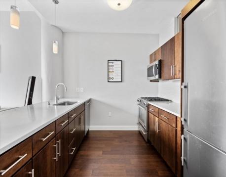 Exceptional south facing upper floor 1 bedroom 1 bath unit in Symphony Court with fantastic light and views. Located on the 6th floor, this unit features high ceilings, hardwood floors, dramatic oversized windows with motorized shades, and a modern kitchen with custom wood cabinetry, stainless appliances, quartz counter tops and an oversized island. Unit includes custom walk in closet system, in unit W/D and central AC. Symphony court has a 24/7 concierge, club room with fitness center and terrace. Centrally positioned where South End, Back Bay and Fenway meet, Symphony Court is conveniently located steps away from Symphony Hall, Whole Foods, and the Prudential Tower. Rental garage parking is available in the building immediately next door. Please note bedroom is an interior bedroom. 24 hour notice required - currently tenanted through 6/30/2025.