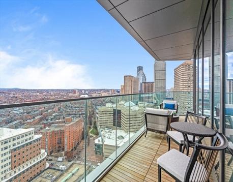 First offering of a highly sought-after A unit floor plan since the sellout of the upper residences at Raffles Boston Residences, this 1,832 sq ft southwest corner home defines elevated city living. Featuring two bedrooms, two and one half baths, and a full-size den, the layout is refined and functional. Floor-to-ceiling exposures capture sweeping views of the Boston Harbor Islands and the Charles River, with striking sunsets and natural light throughout. A private terrace overlooks Back Bay and the South End, extending the living space outdoors. Interiors are appointed with Sub-Zero and Wolf appliances, marble finishes, spa-like baths with soaking tub, and three customized closets in the primary suite. Custom wallpaper, lighting, and window treatments complete the home. Two valet parking spaces and private storage included. Residents enjoy 24-hour concierge, valet, in-residence dining, housekeeping, butler service, spa, fitness center, and indoor pool.