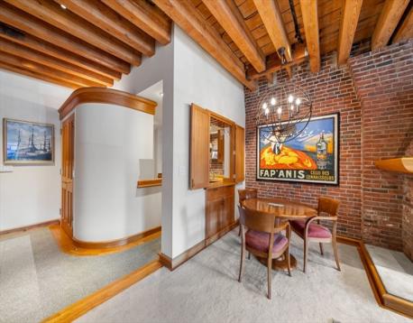 Architect-designed brick & beam waterfront residence at Lewis Wharf offers 2,530 sq. ft. of luxury with unobstructed harbor & city views. Custom-built by Payne Bouchier, this south-facing home blends historic detail with modern craftsmanship. The open-concept main level features exposed beams, a wood-burning fireplace, and seamless flow to a private walk-out terrace—perfect for entertaining. Extensive hardwood built-ins include bureaus and a striking Hawaiian Koa staircase. A professionally designed lighting system with whole-house controls sets the mood throughout. The primary suite offers custom cabinetry, a massive walk-in, and spa-like bath. A private guest suite with ensuite bath, additional office with balcony, and sweeping water views complete the home. Other highlights: wide-plank flooring, designer finishes, and, separate laundry room. Lewis Wharf amenities include 24-hour concierge, gardens, heated pool, marina, and elevator access. Prime, convenient location.