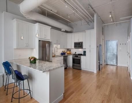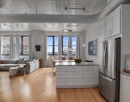 OPEN HOUSE Sunday Nov 9 from 11:30-1:00....EXCEPTIONAL VALUE AT NEW & IMPROVED PRICE! Stunning and completely renovated 1224 sqft offers a sun-splashed open, expansive floor plan with Custom Chef's Kitchen as a focal point for culinary creativity & social interaction with a peninsula creating seating & counter space, perfect for casual meals or a full-size Dining Area for entertaining friends and family. The bathroom provides a custom tiled walk-in shower, offering a modern & luxurious space to refresh & rejuvenate. Custom sliding barn door accesses your private oversized primary suite with a walk-in closet providing for a streamlined and organized wardrobe. Underground garage parking included in this pet-friendly and secure Seaport Lofts building. Roof-deck access to enjoy spectacular panoramic views of the harbor & city skyline. Here is your opportunity to Enjoy and Experience Boston's vibrant Seaport lifestyle!