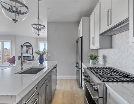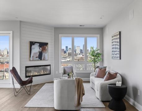 One Unit Remains!! Welcome to 44 Ellery Street in the heart of Southie's most exciting neighborhood. This transit oriented location is surrounded by some of the city's largest projects which will change the landscape of the Dot Ave. corridor. The savvy buyers will see the value! Penthouse Unit 601 offers almost 1500 sq ft of living space w/ sweeping city views. As you step in you are greeted w/ an open concept kitchen & living space perfect for entertaining. The kitchen features oversized, modern shaker cabinets, designer pendant lighting, beautiful hardware, a top of the line appliance package and a built in beverage/espresso bar. The living room is adorned with a fireplace anchored by decorative shiplap detail. Wide plank flooring throughout, MASSIVE private outdoor space w/ fireplace, in-unit laundry & one garage parking space add contemporary comforts. Large bedrooms including an ensuite primary. The bathrooms are outfitted in custom vanities & large format stone. Welcome home!