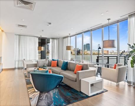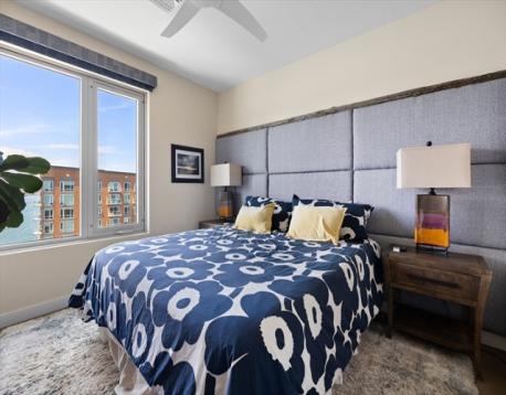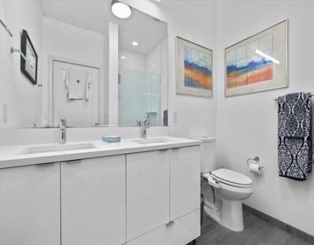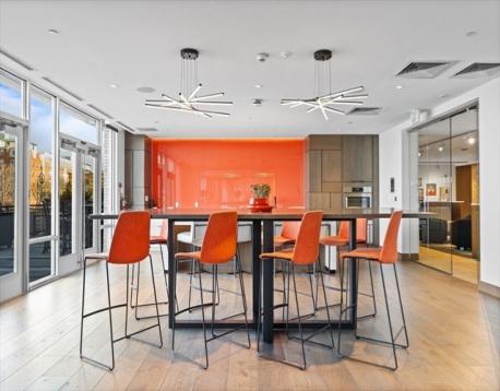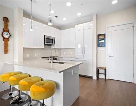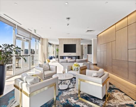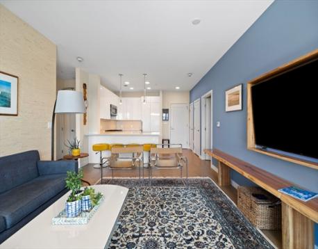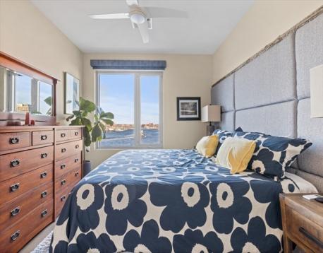 Slip45 --PENTHOUSE with Dramatic Water & City Views! Enjoy stunning Harbor & City Skyline Views from every room! Entertain on your Private Deck and relax to Sunsets as Sailboats drift by. Heated GARAGE Parking Space Included & EV Charger. Premier Full-Service Luxury Waterfront Experience Amenities 24/7 Concierge, Fitness Center, Yoga Studio, Bike Room, Pet Spa, Billiards Room, Movie Theater, Outdoor Grills & Entertainment Lounges. Open-concept Kitchen with Island, Bosch Appliances, 5 Burner Gas Cooking, Quartz Counters, Custom High gloss cabinetry. 5” NY Gray wood plank floors. Recessed lights, W/D in Unit & Central A/C. The Primary Bedroom fits a King Bed with Large Walk-in Closet & WATER VIEWS! Bright minimalist Bath: Double Vanity + Glass Shower. 2nd Bedroom offers a Custom Murphy Bed, Desk & Full Bathroom. Steps to Piers Park with live music, art shows. KAYAK Launch outside your front door!