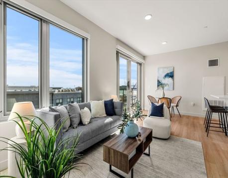 Perched above the harbor in East Boston’s coveted Jeffries Point, this Slip45 PENTHOUSE offers unrivaled views of the Tall Ship, waterfront, and Boston skyline. Sunlit and sophisticated, the two-bedroom residence features expansive windows, beautiful hardwood floors, and a chef’s kitchen with Bosch appliances, quartz countertops, and an island perfect for entertaining. A private balcony invites quiet moments above the city, while the spa-inspired bath and in-unit laundry add everyday ease. Enjoy exclusive access to Slip45’s luxury amenities, including a fitness center, lounges, grilling stations, and harborside seating areas. Moments from the Maverick T stop, MBTA Ferry, and local favorites, this home blends modern design with waterfront tranquility—and delivers one of the most iconic views in Boston.