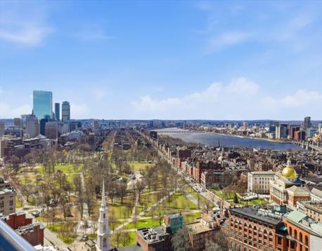 A sun-drenched corner residence with sweeping skyline views, this 2-bedroom, 2-bath home offers 1,378 sq ft of refined high-rise living in the heart of Downtown Boston. Floor-to-ceiling windows frame open views of the Financial District, Back Bay, and the surrounding cityscape, filling the living, dining, and kitchen areas with natural light throughout the day. The open kitchen features a large island with an integrated cooktop, creating a central gathering point for cooking and entertaining. The main bedroom includes an ensuite bath, and both bedrooms enjoy expansive skyline views. Set on a quiet, historic side street, the residence places you steps from premier dining, shopping, theaters, and multiple transit options. The building is celebrated for its luxury amenities, including a four-season pool, rooftop lounge, fitness center, 24-hour concierge, valet garage parking, a library, and a media screening room—all designed to elevate everyday living.