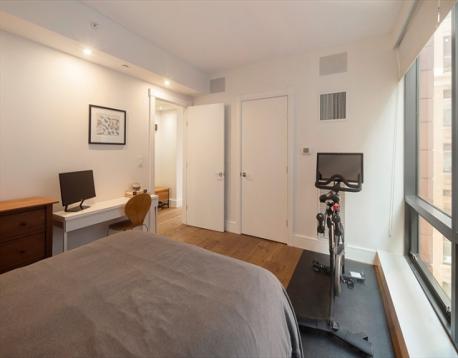 Step inside this rarely available loft style duplex with private balcony at 45 Province this custom designed two-bedroom two bathroom loft balances architectural drama with ease.Double-height ceilings stretch upward, while floor-to-ceiling windows frame sweeping views of Boston. The kitchen is anchored by sleek custom cabinetry and a suite of appliances that includes Sub-Zero refrigeration and induction cooking. Upstairs, a lofted office overlooks the main living space below. The primary suite is tucked beyond, where a spa-like bath, complete with an oversized glass shower and double vanity.Every detail has been thoughtfully considered: custom lighting, wallpaper selections, and electric blinds that disappear at the touch of a button. An integrated AV system with built-in speakers carries sound throughout, adding another layer to the living experience. 45 Province is a luxury boutique full service residence with pool, fitness center, concierge and more!