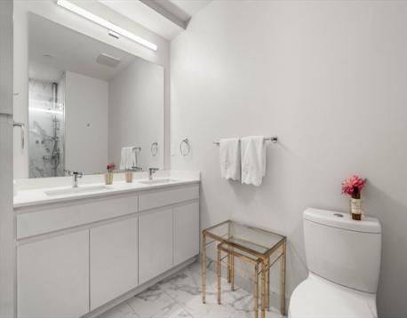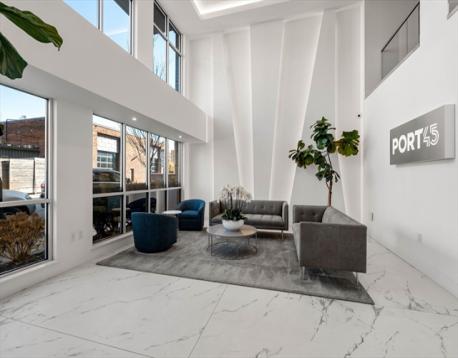 Enjoy luxury living at Port45! This townhouse style two bedroom, two and a half bathroom unit spans two floors with both street-front access and interior access to all the building amenities including garage, gym, club room and roof top overlooking the Boston skyline and harbor. With a private entrance, kitchen island seating, dining area and guest half bath this unit lives large with an overflow of natural light. Large en-suite primary suite with walk-in closet. In-unit laundry. Other luxury building amenities include daily concierge, pet spa, multiple common areas including roof deck with grilling station and dining area, and bike storage. One garage parking space included. Great public transportation options and easy walkability to downtown, Seaport and Southie favorites. Schedule a private tour today! No public open houses will be held.