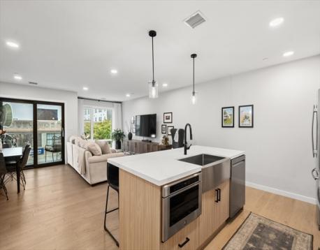Welcome to the Blake-a dazzling 2022 new construction located in the heart of one of Boston's most sought after neighborhoods. Unit 302 blends modern elegance with thoughtful design, featuring quartz countertops, upscale cabinetry and tile. The kitchen is ideal for casual meals to gourmet cooking. The combined dining and living space is perfect for cozy nights or entertaining, with a private balcony and city views. The primary bedroom boasts a generous sized walk-in closet and a stylish en suite bath. The versatile second bedroom offers amble space-perfect for office, workout room or guests. The amenities include roof top with gas grills and pet friendly area, fitness center and an underground heated garage. Unlike most units, Unit 302 comes with a designated parking spot right by the elevators-no lift system needed, making parking and unloading a breeze. The Blake puts you step away from shops, restaurants, transportation and night life.