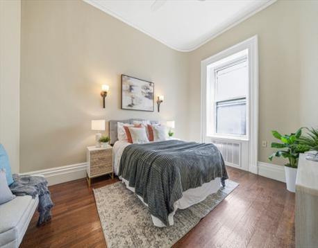 This timeless one bedroom condo is located on the prestigious Commonwealth Ave. The elegant living room greets you with 11-foot plus ceilings, open space for gathering, an inviting original fireplace & dedicated seating area, perfect for tranquil evenings or dinner parties- complemented by elegant crown molding that frames the space beautifully. Thoughtfully integrated built-in shelves provide a refined display, enhancing both utility and aesthetic appeal.The queen/king sized bedroom offers ample space& an abundance of closet space. The large windows throughout the unit allow for ample natural light & a view of Newbury Street from the living room. Don't miss the opportunity to live in an iconic Back Bay location!