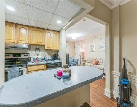 Prime Investment or Owner-Occupant Opportunity! This oversized 2-bedroom condo is currently configured as a 3-bedroom with a separate living room. Located in the iconic Braemore building, just steps from Kenmore Square and Newbury Street, this former luxury hotel offers a marble lobby, elevator, on-site superintendent, professional management, and a stunning common roof deck with panoramic views of the Charles River and Boston skyline. The unit features a renovated kitchen with maple cabinetry, stainless steel appliances, and Corian countertops, plus a modern bathroom with porcelain tile and a glass-enclosed shower. Additional upgrades include newly installed living room flooring, fresh paint, central HVAC, and hardwood floors throughout. Conveniently close to Longwood Medical, BU, Berklee, and Back Bay amenities. Currently rent for $5,800 to 8/31/2026.