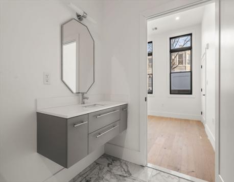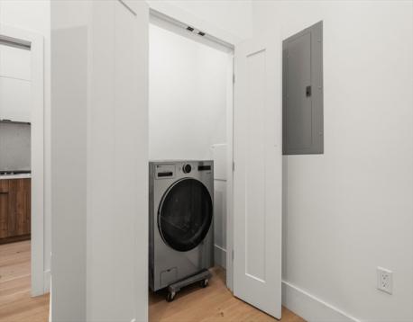47 Condor is made of seven units in a beautiful new construction building in Eagle Hill in East Boston. Enjoy single level living and direct unit access in Unit 101.The first thing you'll notice are that the ceiling heights are unexpectedly generous! Wide-plank hardwood runs throughout. The kitchen is fully appointed with walnut and white cabinetry, continuous quartz countertop and backsplash, 5-burner gas cooktop, built-in wall oven and microwave, integrated dishwasher, and counter-depth refrigerator.The bathroom is floor-to-ceiling marble with a soaking tub, matte black fixtures, and a floating vanity. The secondary room functions as a home office, nursery, or guest space and the laundry is in the second room as well. 47 Condor is Blue Line accessible and minutes from Logan. Offered at $489,000!