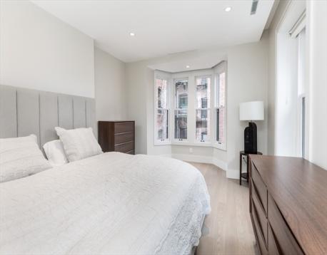 Welcome home to this immaculately laid out, custom-renovated 3bed, 2.5bath duplex features two private decks, just 1 flight from street. Custom millwork, designer lighting, Sonos system, floor-to-ceiling windows, and white oak floors create a refined welcoming atmosphere. The open kitchen/living/dining area centers around a gas fireplace with custom built-ins, complemented by a sleek bar and wine fridge and large separate dining area and reading nook. Kitchen features a Lincoln Calacatta marble island with premium Sub-Zero and Wolf appliances. The primary suite offers ample closet space and spa-like bath with radiant floors, soaking tub, and glass-enclosed shower. Step outside to your private deck. Upstairs includes two bedrooms, a full bath, a separate laundry room with a wet bar, and a family room with a fireplace that opens to a 31x12'.5 spacious deck. Set on one of Beacon Hill’s most sought-after streets, this home offers easy access to Charles Street, Boston Common, and MGH.